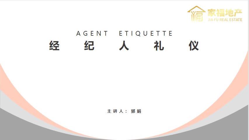 礼仪是服务行业必备的礼仪,经纪人礼仪是房产经纪人工作的重要组成部分。通过对课程的学习,了解工作中有关日常礼仪、接待礼仪和商务礼仪等知识,帮助学员提升自我,对外树立良好的家福形象。